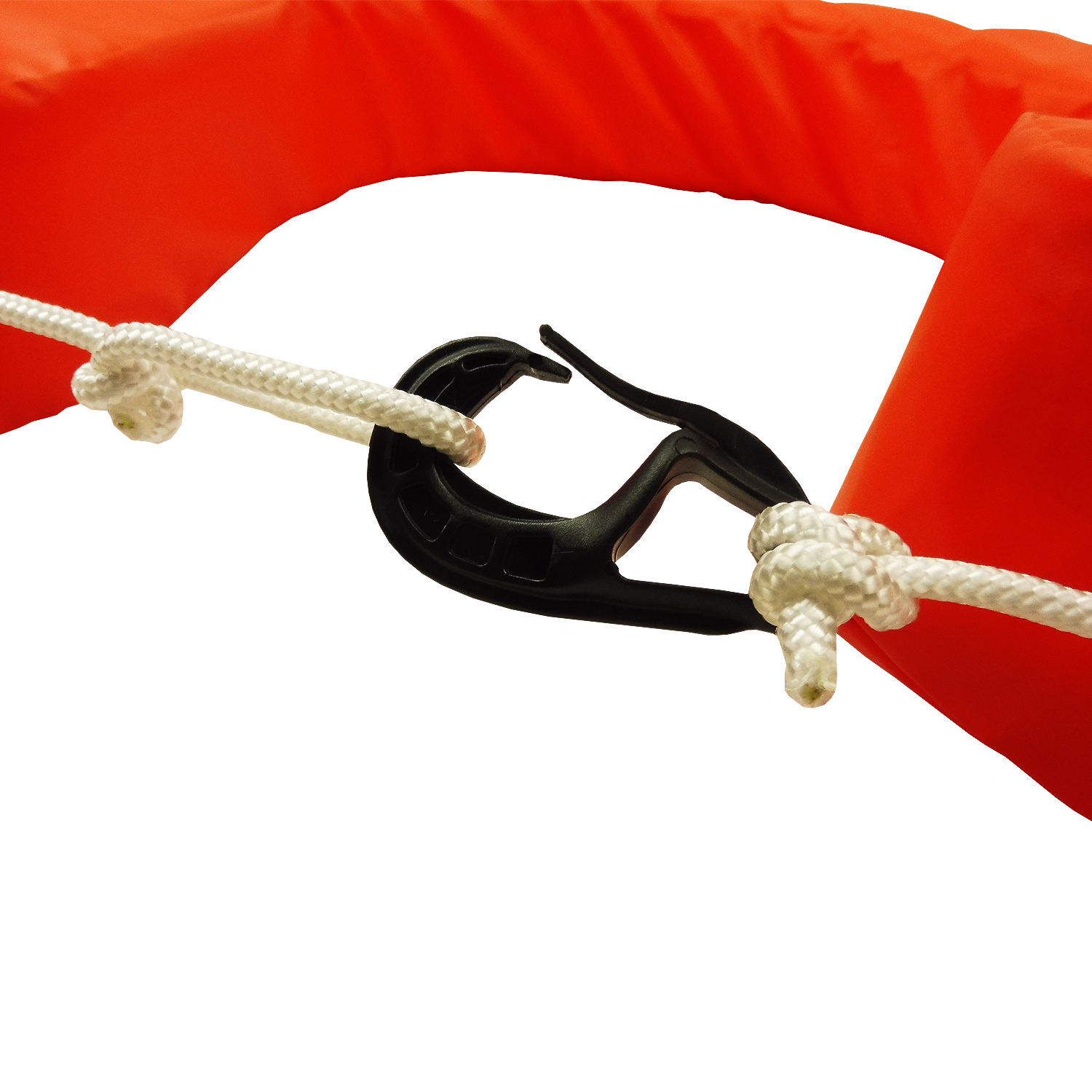- Équipée d'une saisine en cordage avec mousqueton en plastique